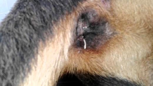 Ok, this was alive, moving, crawling out of her bum. This was a worm! Kind of looked like roundworm but it was kind of short for that. Also, even though it looked white, it was kind of semitransparent.
